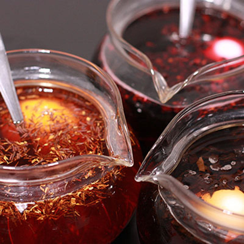 4 tbsp each tea (we used (left to right above) Green Tea Tropical, Organic Rooibos, Ancient Trees Pu'er, and Wild Berry Hibiscus for ours).